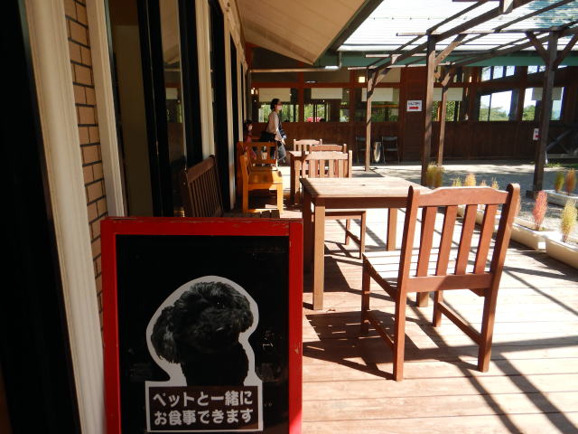 建物の中はペットは入れませんが、外にはテーブル席があって食事が出来ます